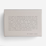 - 60 prompt cards designed to help lead you through the important task of knowing yourself a little better in life. it can be hard to understand who we really are: what we want, how we feel and why we react as we do. this lack of self-knowledge can lead us into unhappy relationships, unsatisfactory jobs, and unsustainable spending habits.