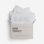 - these Know Yourself Prompt Cards are designed to assist us in a journey of self-knowledge. they present us with a range of ideas and questions that encourage self-reflection, allowing us to become a little more aware of what we really need and what our priorities and potential might be.