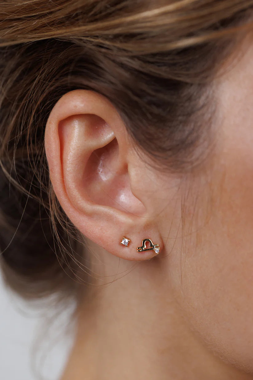 The Zodiac Charm Studs offer a cute way to flaunt your zodiac sign and unique style. Ideal for first, second, or third ear piercings.