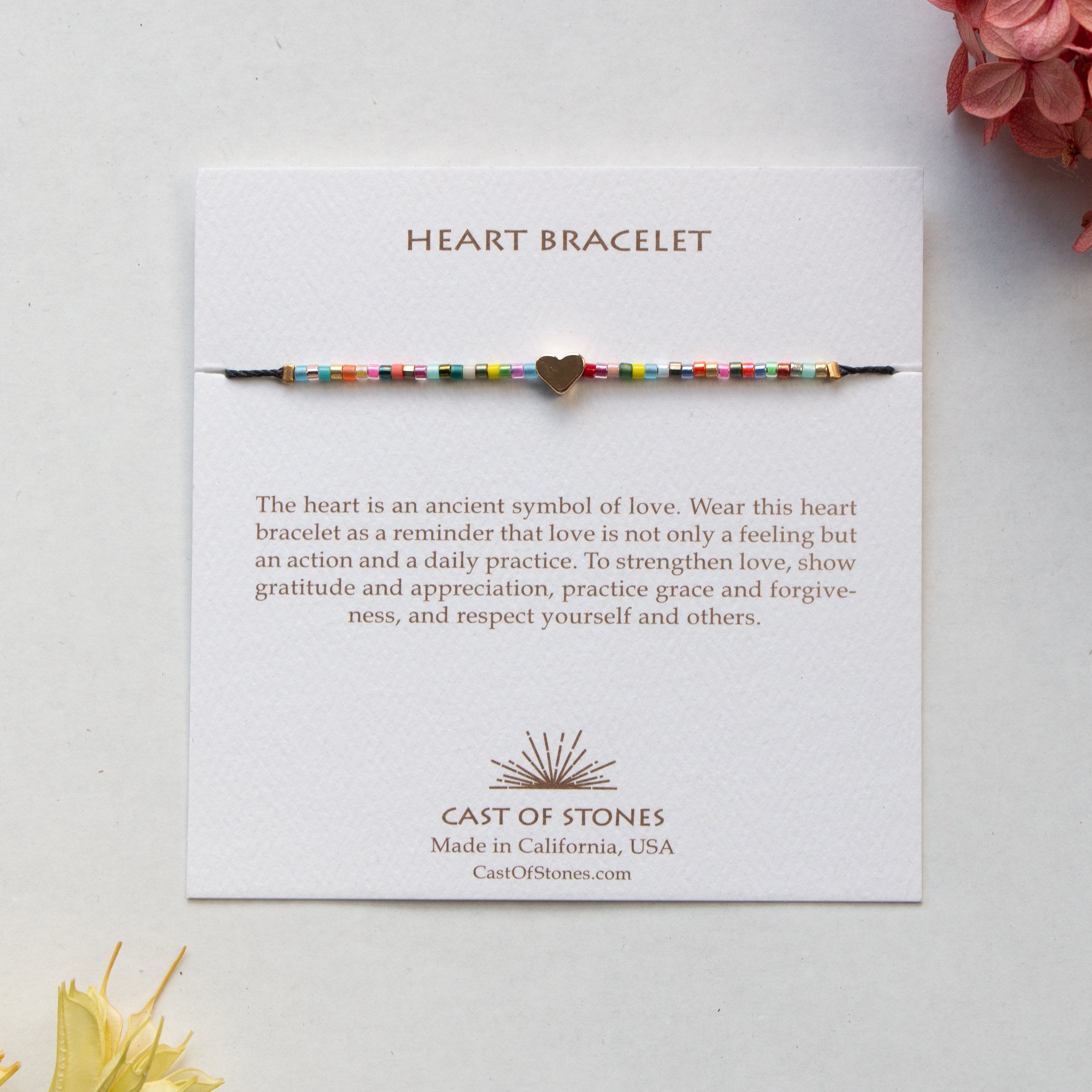The heart is an ancient symbol of love. Wear this heart bracelet as a reminder that love is not only a feeling but an action and a daily practice. To strengthen love, show gratitude and appreciation, practice grace and forgiveness, and respect yourself and others.